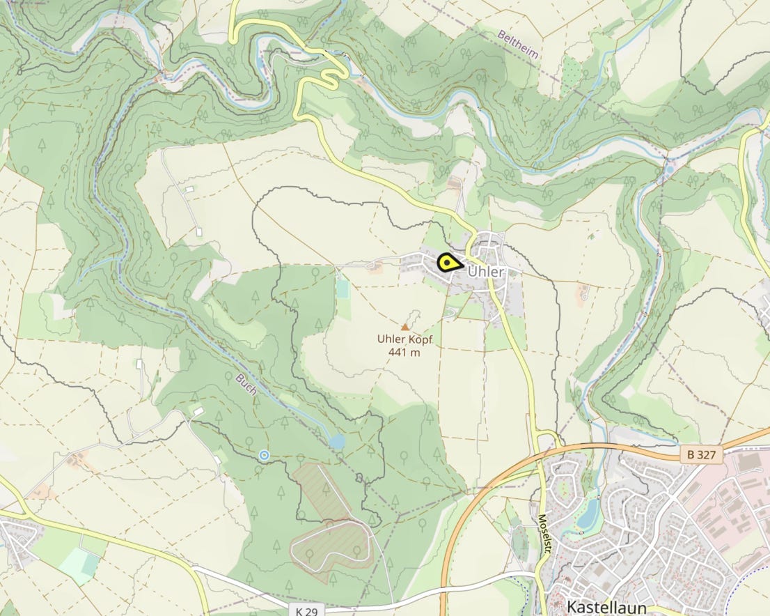 Dies beweisen Münzfunde aus diesem Zeitraum. Vermutlich ist der Ort aber schon auf eine keltische Siedlung zurück-zuführen. Uhler wurde im Jahre 1200 erstmals in einer Urkunde der Reichsabtei St. Maximin in Trier als Owilre erwähnt. Uhler gehörte zum Dreiherrischen Gericht in Beltheim.